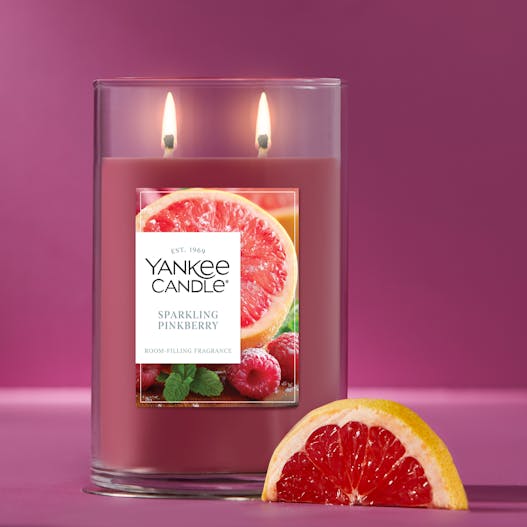 A favorite choice for creating a centerpiece or decorating a mantel, our Large Tumbler Candles are generously sized at 22 ounces and provide an efficient, long-lasting burn with natural wicks. These candles delight with their colorful labels and natural soy wax blend that provides up to 110 hours of room-filling fragrance. Choose a favorite fragrance or one that welcomes the season, and let Yankee Candle® Large Tumbler Candles provide inviting ambiance while creating an inspired addition to your home.
