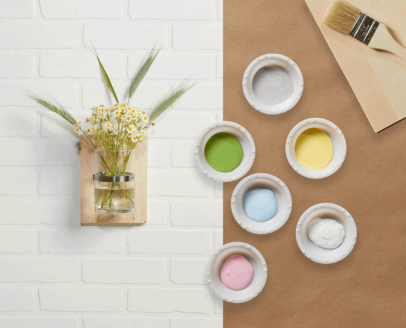 Since the wooden board will be the backdrop for your plant, you’ll want to paint it first! Pick your favorite color or paint a beautiful work of art that will look even more interesting when viewed through water and glass. To minimize mess, make sure the paint fully dries before moving to the next step. (If you prefer a more natural wooden look, you can skip painting altogether.)