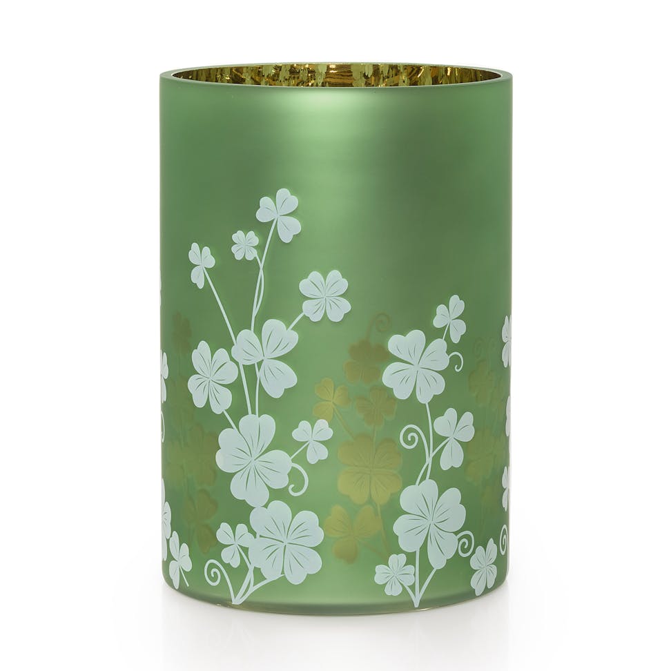 Make your own luck by dressing up your favorite candle with this shamrock-patterned glass Jar Candle Holder that flickers when the candle’s flame is lit.