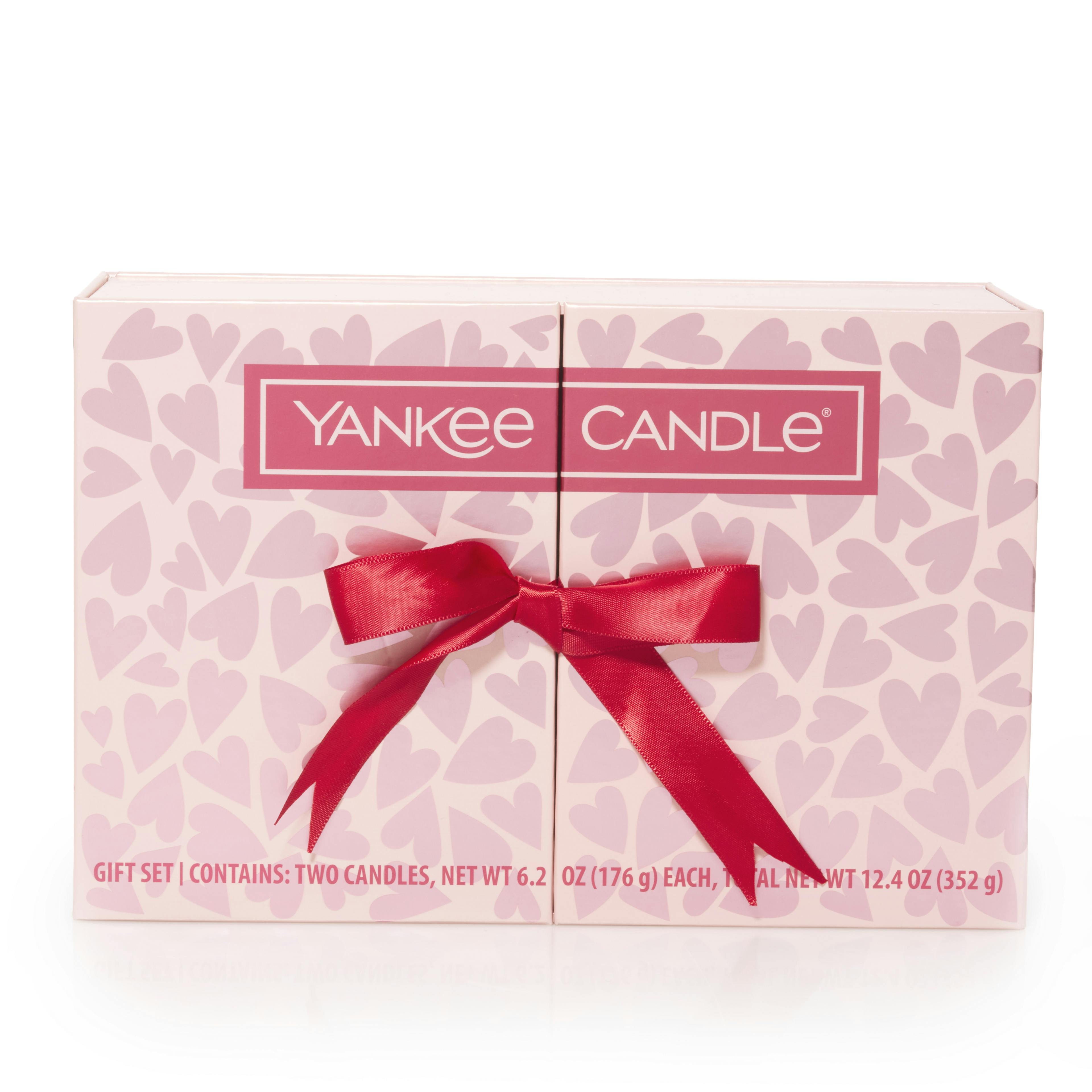 Spread the love with a sweet gift of curated fragrances, perfect for Valentine’s Day. This scented candle gift set contains two fluted glass candles, one each in Fresh Cut Roses and Chérie Lollipop — a sweet gift that lasts longer than flowers. These scented candles come in a pink box decorated with adorable metallic hearts and a red ribbon closure to make the gift feel extra special.