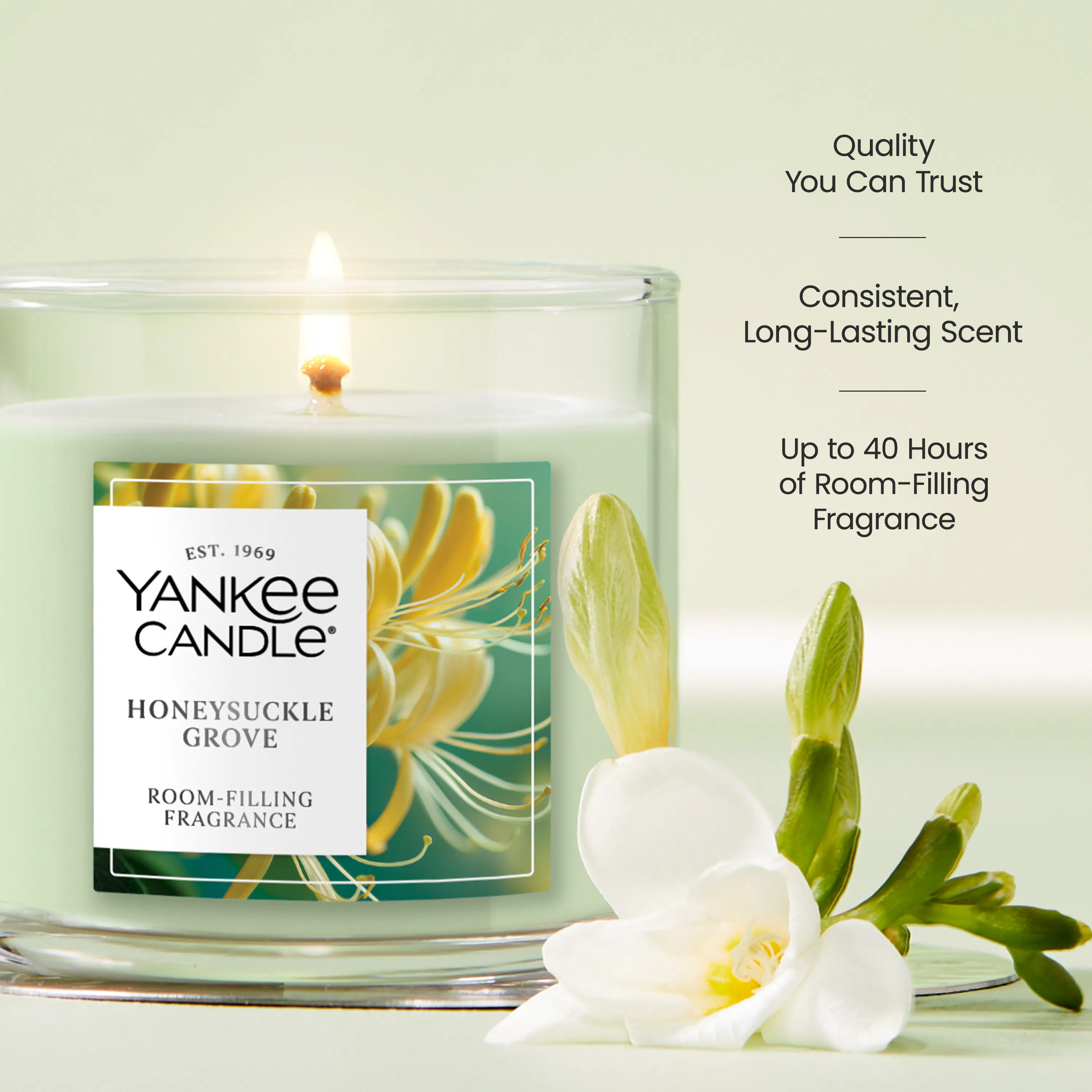 The sun beams down on a blooming grove, awakening scents of dewy greens, ripe fig, and sweet honeysuckle as each plant greets the morning.
