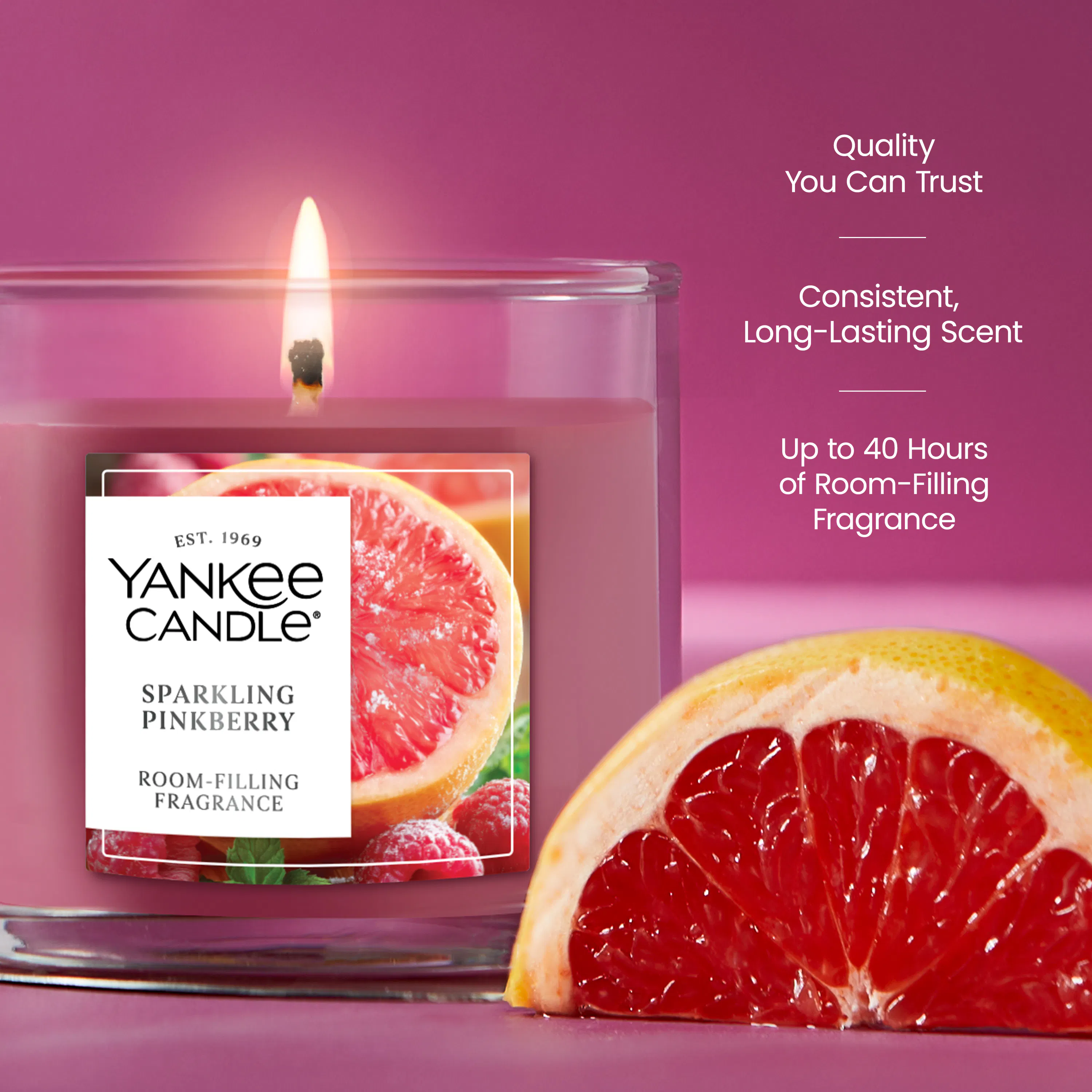 Bright and playful, this vivacious fragrance blends the juicy scents of sparkling grapefruit and raspberry, sprinkled with notes of sugar for extra sweetness.