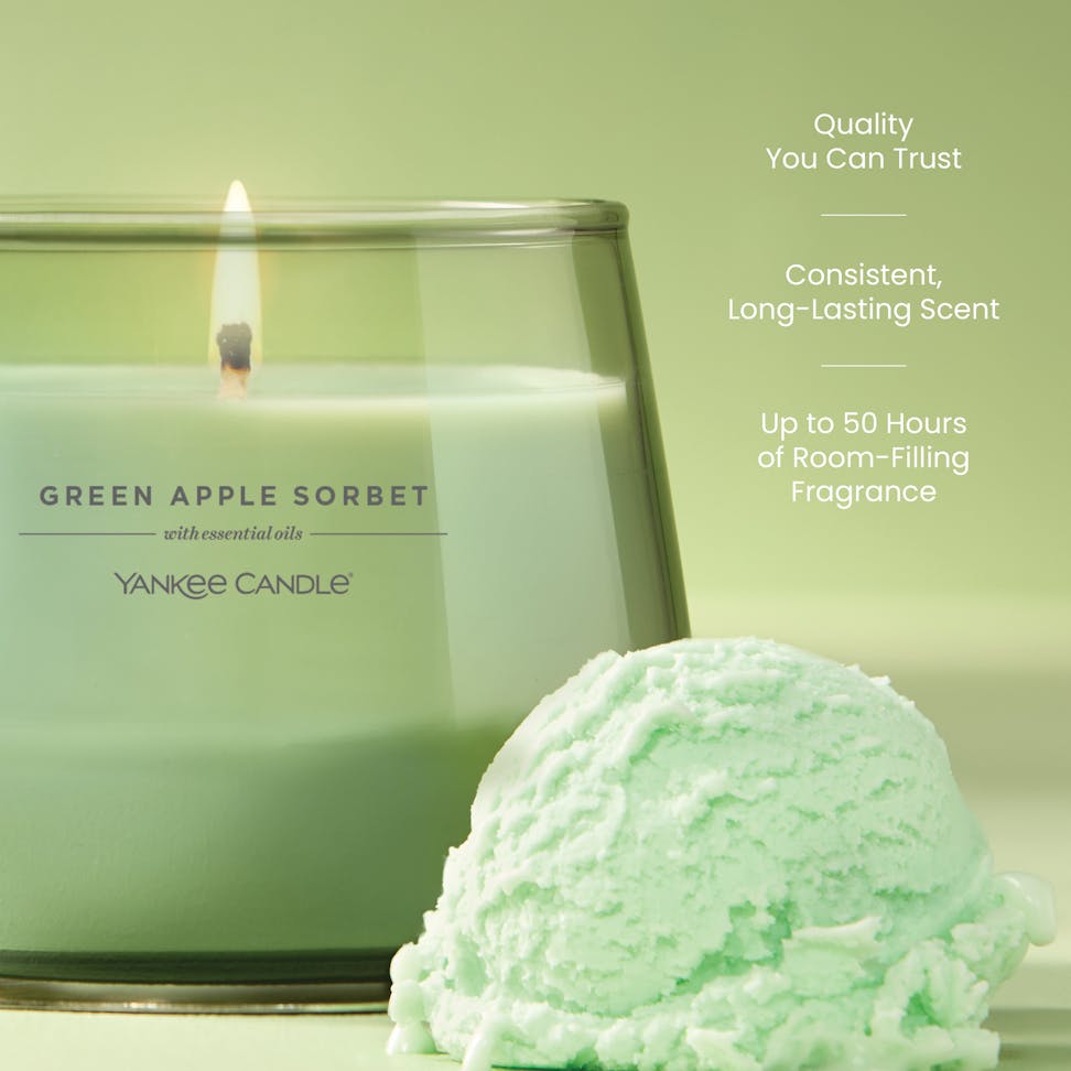 Scoop up something irresistible. The fragrance of icy sorbet blended with tart green apples and luscious pears — sheer happiness.