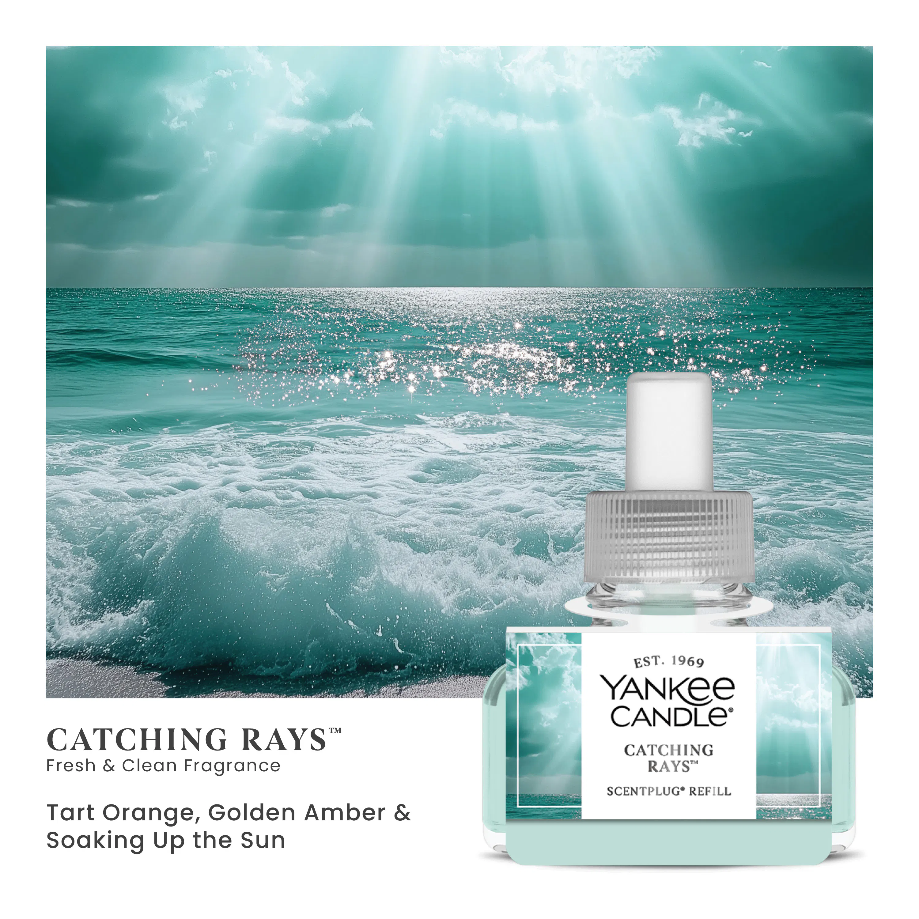 A warm, fresh fragrance of tart orange and golden amber notes, bringing that wonderful feeling of being warmed all the way through by the summer sun. Lavender, geranium, and cypress scents bring depth to the beach vibes.