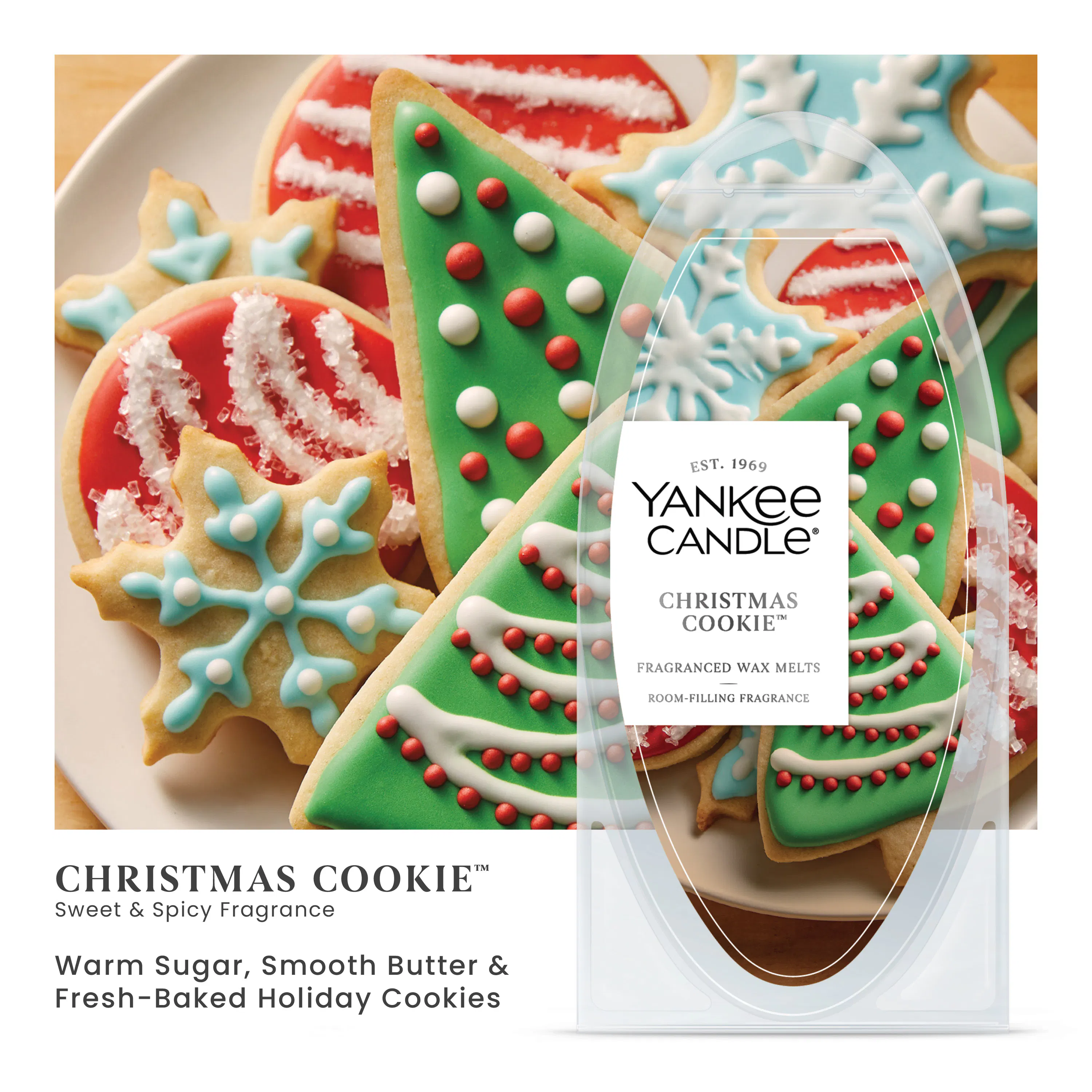 Christmas Cookie™ warms your heart with holiday memories. Warm sugary notes are frosted with scents of creamy vanilla, finished with buttery base notes to bring a sense of satisfaction to your olfactive palate.